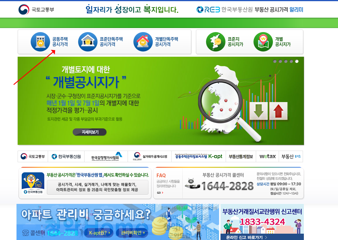 아파트에 대한 공시지가를 알고 싶을때 공동주택 공시가격을 클릭하세요 |