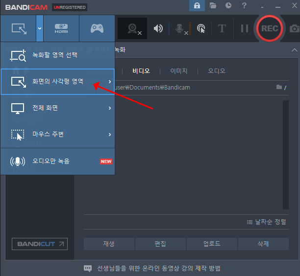 녹화할 영역을 지정후 REC 버튼을 클릭하여 녹화시작을 합니다.