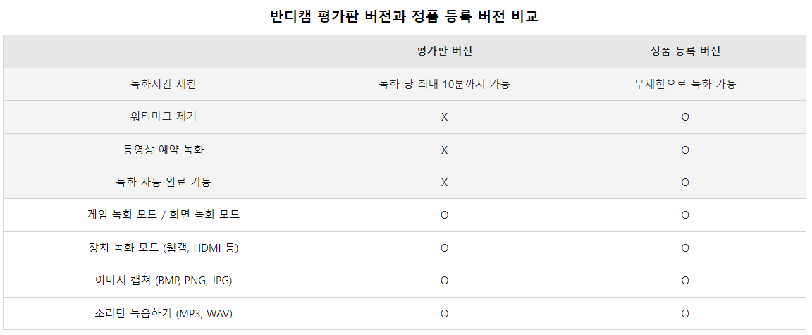유료 정품버전은 워터마크가 없고 녹화시간이 제한이 없습니다.