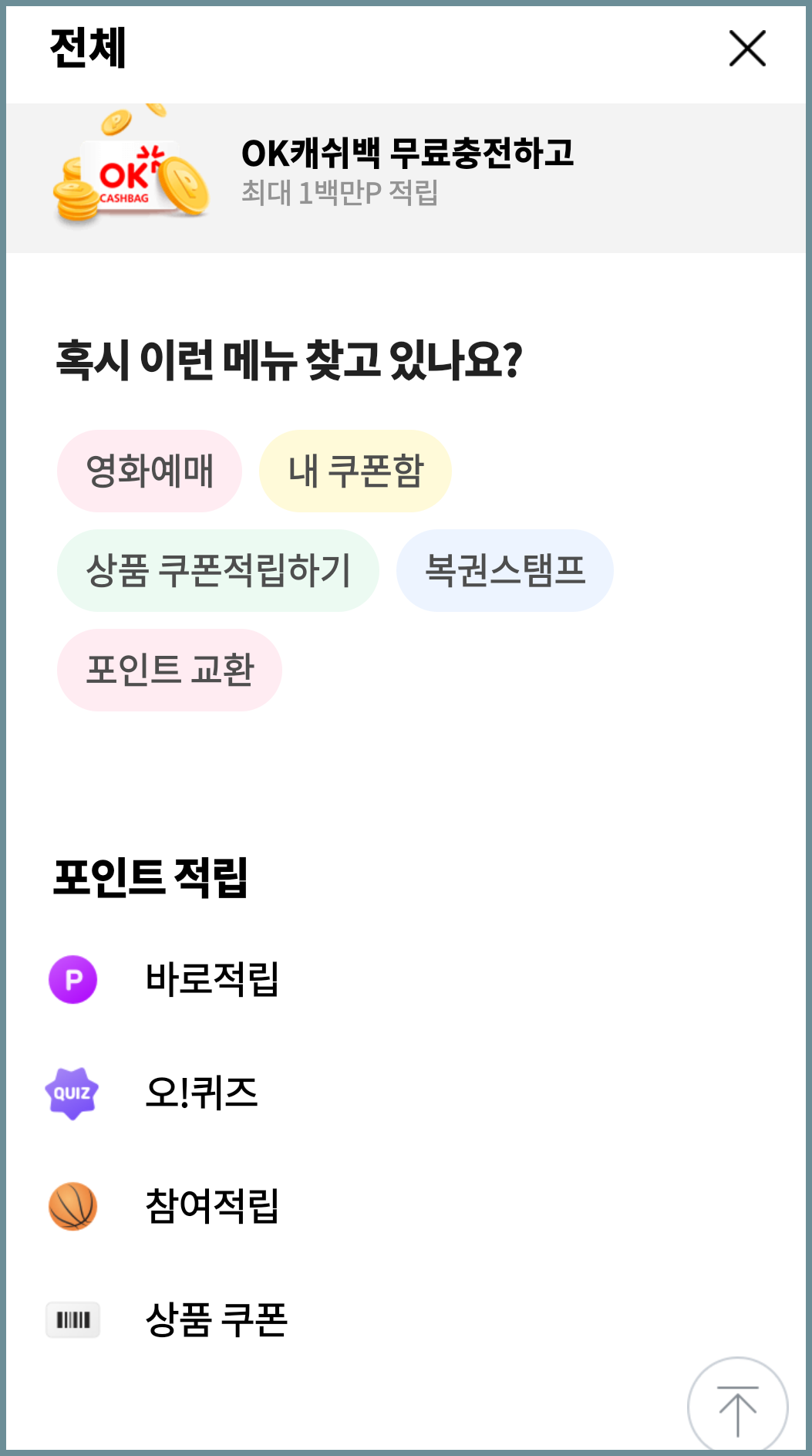 OK 캐쉬백 포인트 적립을 해 보았습니다.
