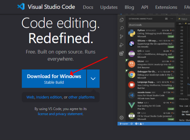 VSCODE 메인페이지에서 프로그램을 다운로드 받아 설치합니다