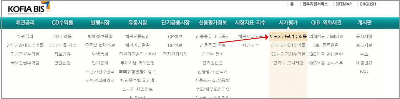 시가평가에서 채권시가평가수익률에 들어갑니다.