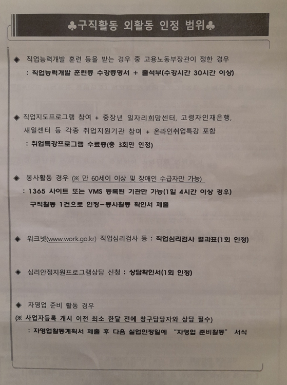 실업급여 회차수에 따라 인정가능한 구직활동 구직외활동이 달라지므로