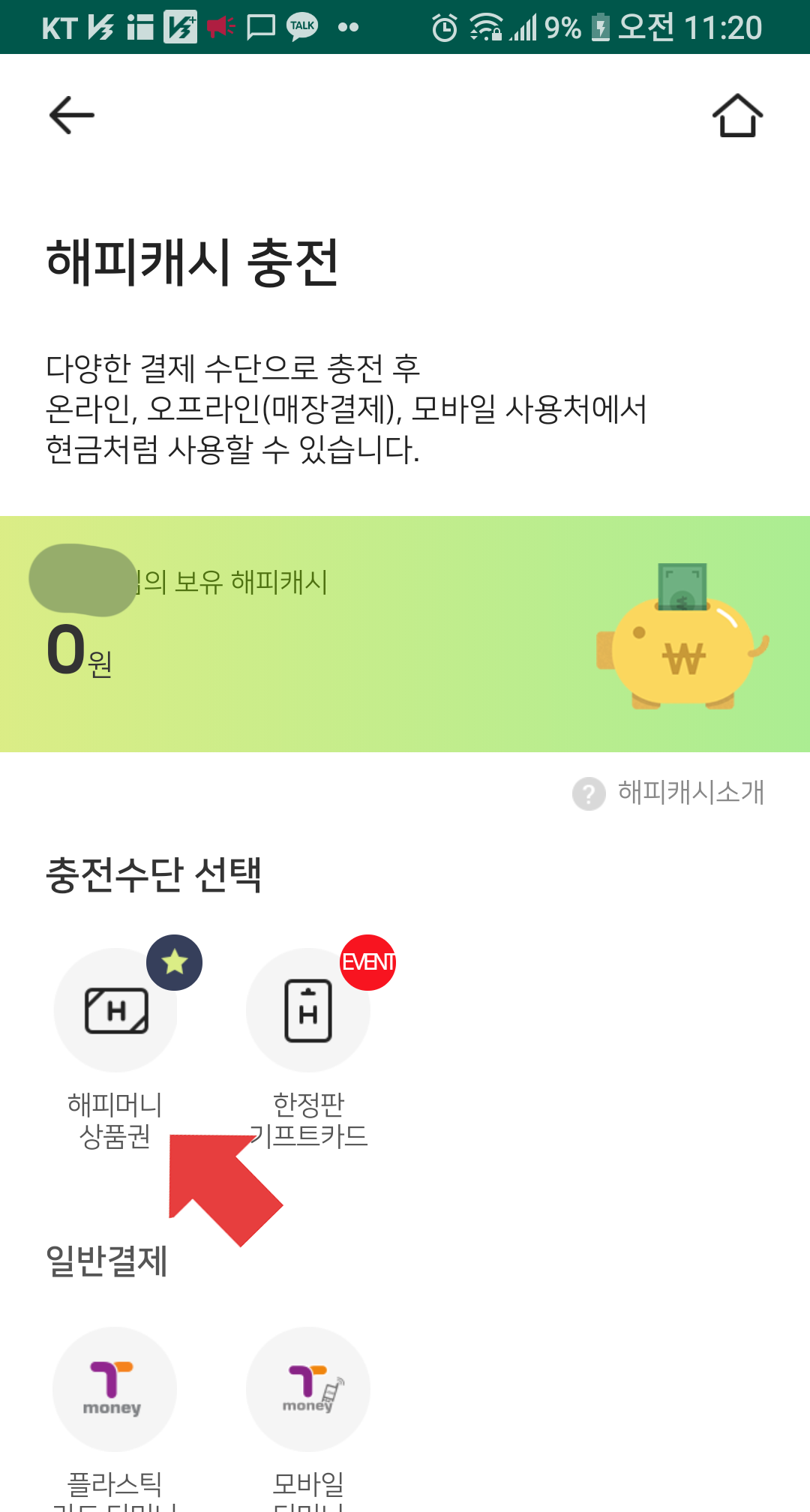 6) 그러면 해피캐시가 충전된 것을 확인 할 수 있습니다.