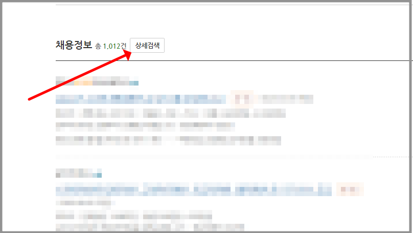 채용정보 옆에 있는 상세검색 버튼을 누릅니다.