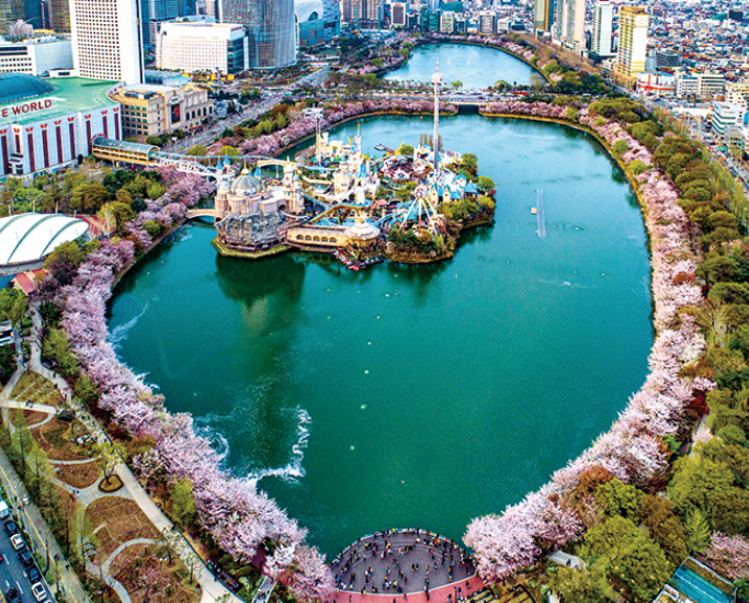 석촌호수: 1000그루 이상의 벚꽃이 늘어서 있는 호수를 보며, 둘레를 거닐다보면 다양한 축제와 포토존을 만날 수 있습니다.