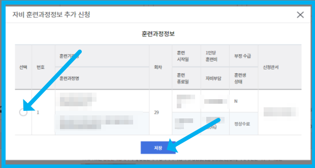환급받고자 하는 과정을 체크후 저장 버튼을 누릅니다.