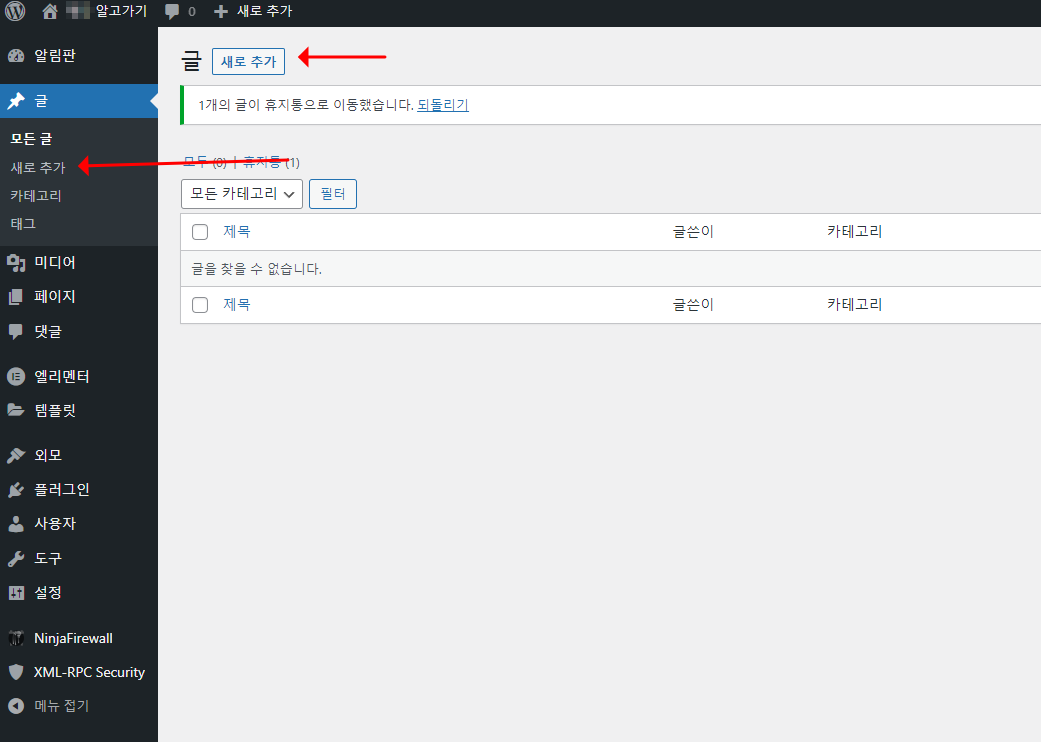 이제 워드프레스를 사용하기 위한 준비는 끝났습니다.