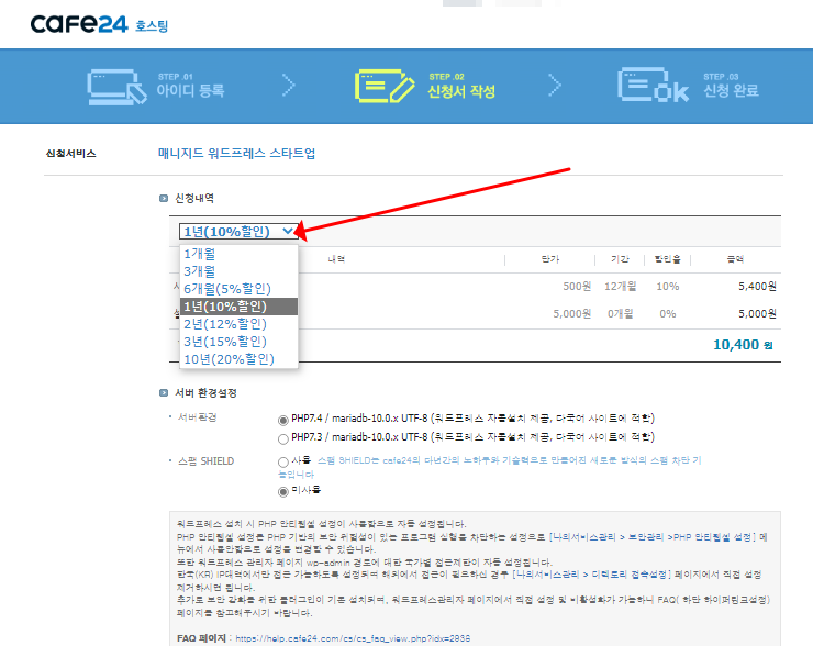 카페24에서는 최소한의 호스팅을 사용할때 비용이